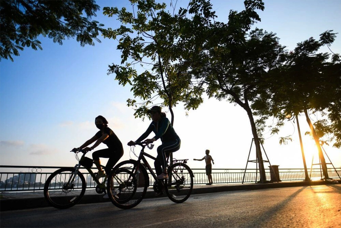 Đạp xe hoặc chạy bộ sáng sớm ở hồ Tây