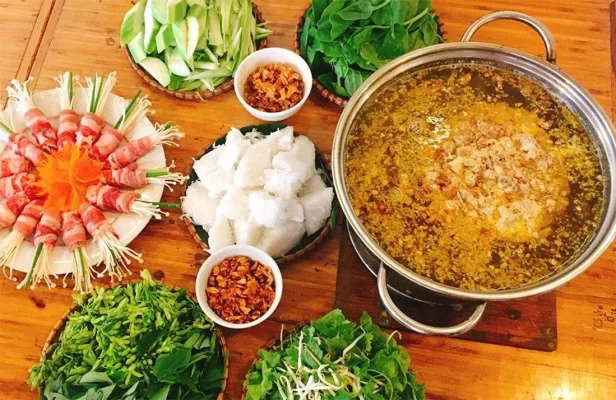 Ăn lẩu vào trời lạnh ở Hà Nội mang lại cảm giác ấm áp và sum vầy vui vẻ. Nồi lẩu riêu, lẩu gà hay một số món lẩu đặc trưng Hà Nội nghi ngút khói, nước dùng đậm đà, kết hợp rau tươi, khiến thực khách vừa ăn vừa xuýt xoa. Quây quần bên bạn bè, người thân, trò chuyện rôm rả giữa không gian ấm cúng, lẩu không chỉ là món ăn mà còn là cách tận hưởng khoảnh khắc mùa thu Hà Nội. Ảnh: Lẩu Việt