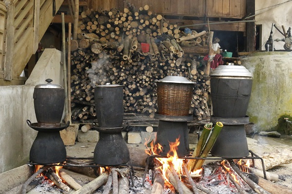 Màu đỏ tượng trưng cho sự sống, may mắn và khởi đầu mới; màu xanh biểu trưng cho rừng cây và sức sống bền bỉ; màu vàng đại diện cho sự sung túc, ấm no; màu tím gợi nhớ đến đất đai, cội nguồn; màu đen mang ý nghĩa huyền bí, linh thiêng của núi rừng Tây Bắc. Các gam màu hòa quyện hài hòa, tạo nên một món ăn không chỉ đẹp mắt mà còn chứa đựng chiều sâu văn hóa của đồng bào vùng cao.