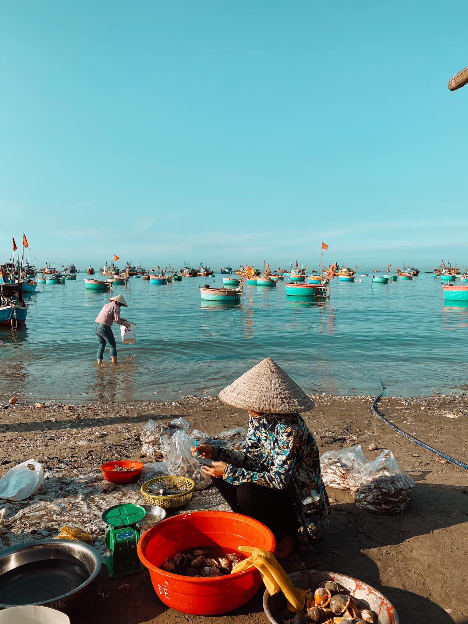 Thời điểm đẹp nhất mà bạn nên ghé thăm làng chài trong lịch trình du lịch Phan Thiết tự túc đó là buổi sáng sớm. Bởi vì, khi “ông” mặt trời ló dạng thì cũng là lúc người dân địa phương bắt đầu họp chợ. Vào các phiên chợ hải sản, bạn sẽ cảm nhận thấy làng chài Mũi Né sẽ trở nên náo nhiệt và đông đúc hẳn lên. Đập vào mắt bạn chính là hình ảnh những chú cá, tôm, mực… tươi sống ngọ nguậy như đang nhảy múa. Bạn có thể mua hải sản tại làng chài Mũi Né và đem về chuẩn bị cho một đại tiệc BBQ. Dù chỉ ghé đến làng chài Mũi Né một lần nhưng chắc chắn hình ảnh thanh bình của vùng quê ven biển này sẽ mãi khắc sâu và tâm trí bạn đấy.
