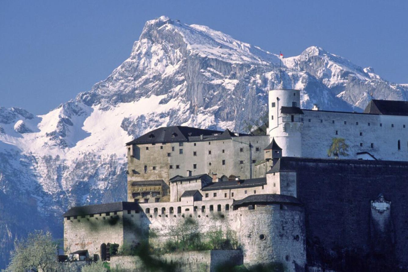 Ngự trị trên đỉnh Festungsberg, pháo đài hùng vĩ này là biểu tượng kiêu hãnh của Salzburg. Cáp treo Festungsbahn đưa bạn lên đỉnh chỉ trong vài phút, mở ra tầm nhìn toàn cảnh mái vòm xanh, sông Salzach lượn quanh và dãy Alps xa xa phủ tuyết.