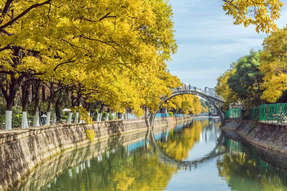 Dù nổi danh là “thành phố mùa xuân”, Côn Minh mùa thu cũng rất đáng để ghé thăm. Các công viên và hồ nước trong thành phố được bao phủ bởi hàng cây lá vàng đỏ, khí hậu mát mẻ, dễ chịu. Một buổi chiều dạo quanh Hồ Điền Trì, bạn có thể ngồi xuống bên quán trà nhỏ, ngắm mặt hồ phẳng lặng và thưởng thức tách trà hoa cúc – cảm giác nhẹ nhàng, thư thái hiếm có.