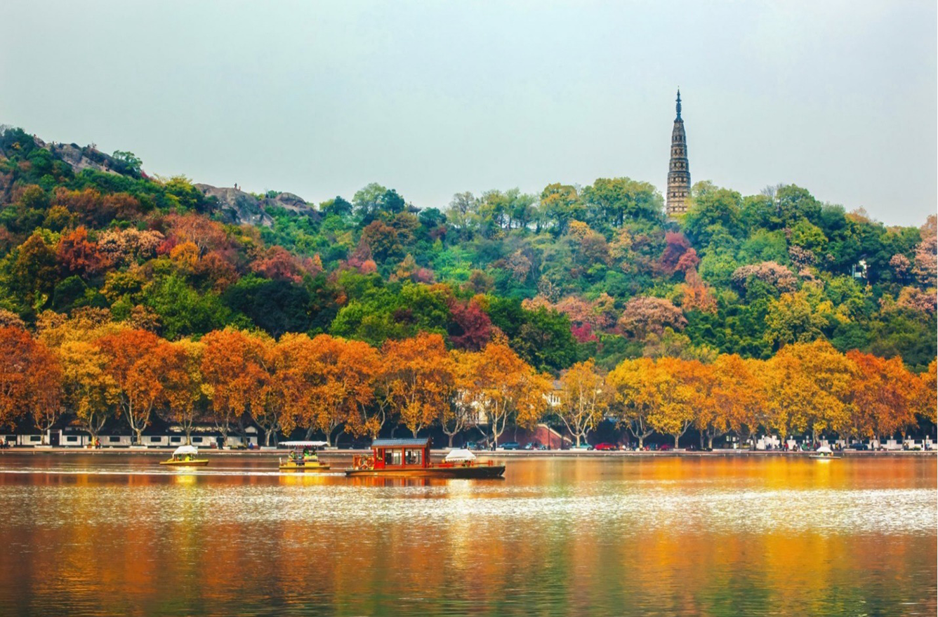 Tây Hồ Hàng Châu mùa thu gợi cảm giác vừa cổ điển vừa thơ mộng. Khi hoàng hôn buông xuống, ánh nắng vàng nhuộm đỏ mặt hồ, khói lam chiều quyện cùng hàng liễu rũ, tạo nên cảnh tượng khiến du khách như lạc vào thế giới trong thơ Đường. Nếu đi thuyền trên hồ, bạn sẽ nghe thấy tiếng mái chèo khua nhẹ, cảm giác như đang sống giữa một khúc nhạc cổ. Đặc biệt, món trà Long Tỉnh thưởng thức trong tiết thu se lạnh sẽ khiến bạn nhớ mãi.
