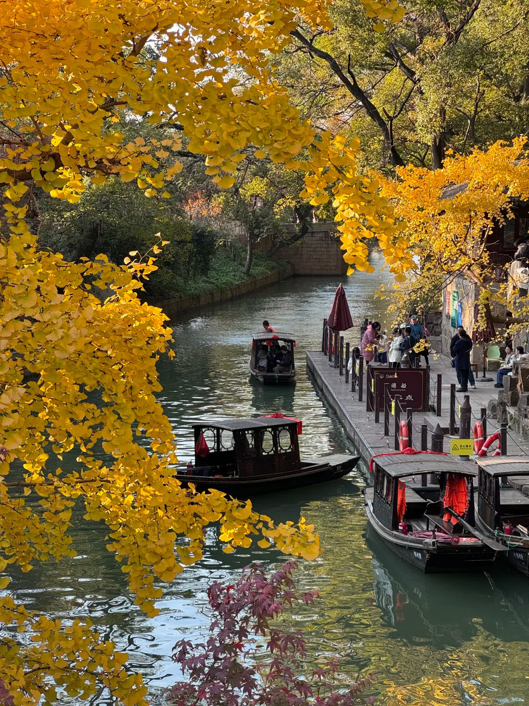 Đi bộ qua những con hẻm nhỏ lát đá ở Tô Châu vào mùa thu là một trải nghiệm khó quên. Hai bên là những bức tường trắng rêu phong, dòng kênh tĩnh lặng phản chiếu sắc lá phong đỏ rực. Những chiếc thuyền gỗ chậm rãi trôi, người lái đò ngân nga vài câu hát dân gian, tất cả mang lại một bầu không khí lãng đãng, đậm chất tình. Nếu yêu thích nhiếp ảnh, bạn nhất định sẽ tìm thấy những góc chụp “không góc chết” tại phố cổ này.