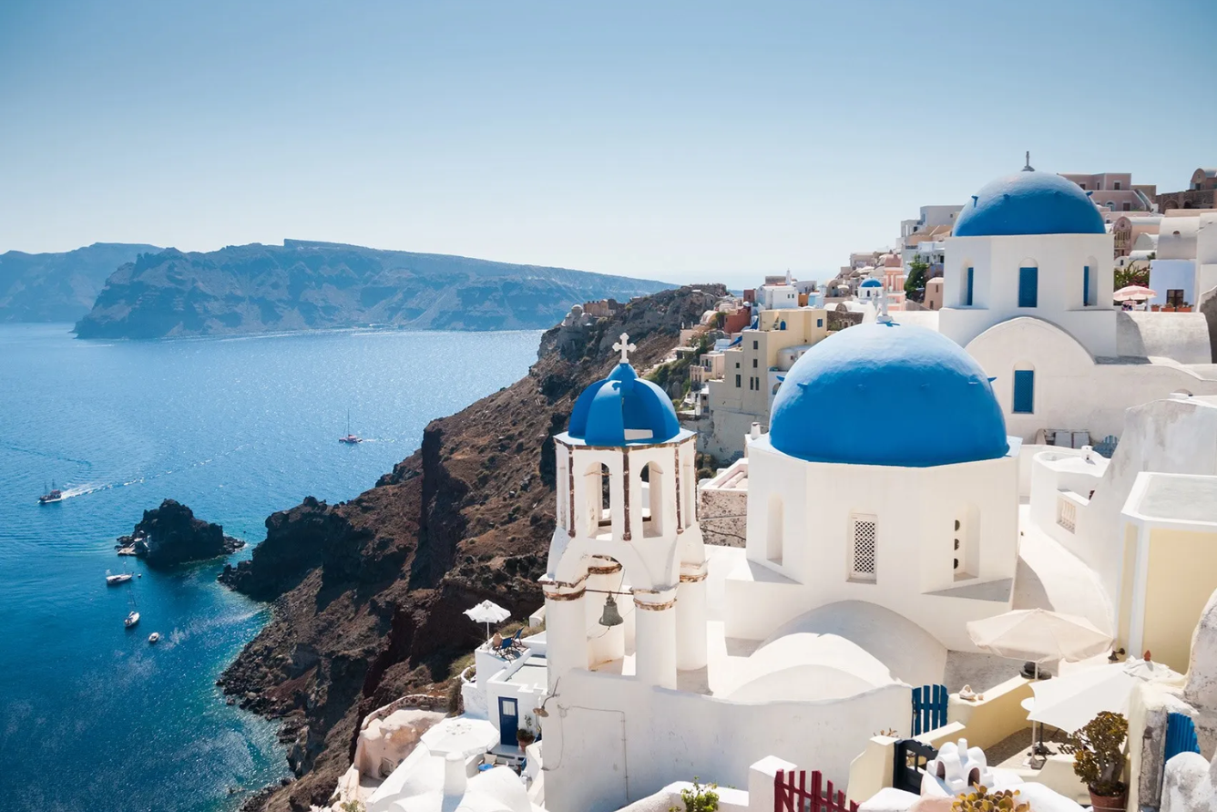 Giữa muôn vàn đảo nhỏ của quần đảo Cyclades, Santorini nổi bật như một viên ngọc trắng nằm giữa đại dương lam ngọc. Những mái nhà vòm xanh dương xen kẽ tường vôi trắng đặc trưng, nằm e ấp bên vách đá dựng đứng, tạo nên một khung cảnh vừa kỳ vĩ vừa thơ mộng. Mùa hè ở Santorini là thời khắc đẹp nhất trong năm. Ánh mặt trời nhuộm vàng từng con ngõ nhỏ ở làng Oia, nơi hoàng hôn được xem là một trong những cảnh sắc đẹp nhất thế giới. Khi mặt trời lặng dần sau đường chân trời, bầu trời nhuộm đỏ thẫm, biển xanh trở thành gương soi phản chiếu bức tranh kỳ ảo ấy.